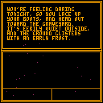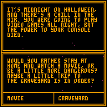 It's midnight on Halloween, and there's a chill in the air. Select your own quest in this text game, navigating 4 areas to find the 10 haunted treasures of Halloween! But ... are you brave enough?